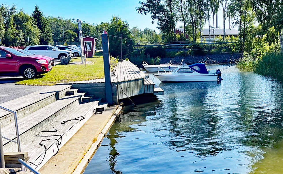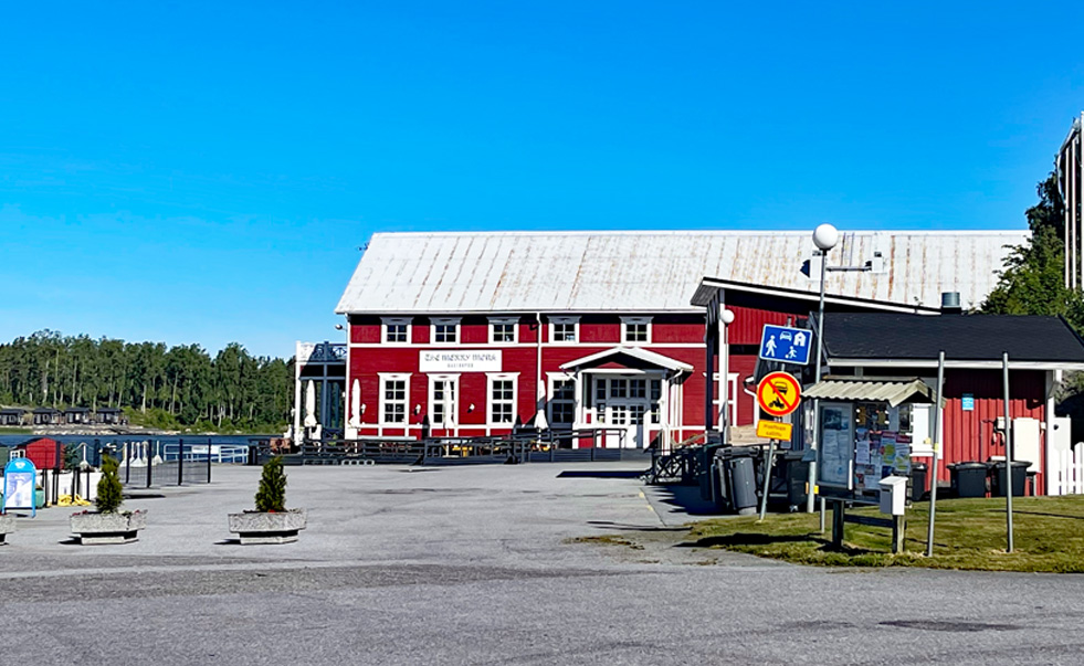 Sataman alueella tarjolla myös ravintolapalveluita terasseineen ja huoltorakennus matkailijoille WC- ja suihkutiloineen.